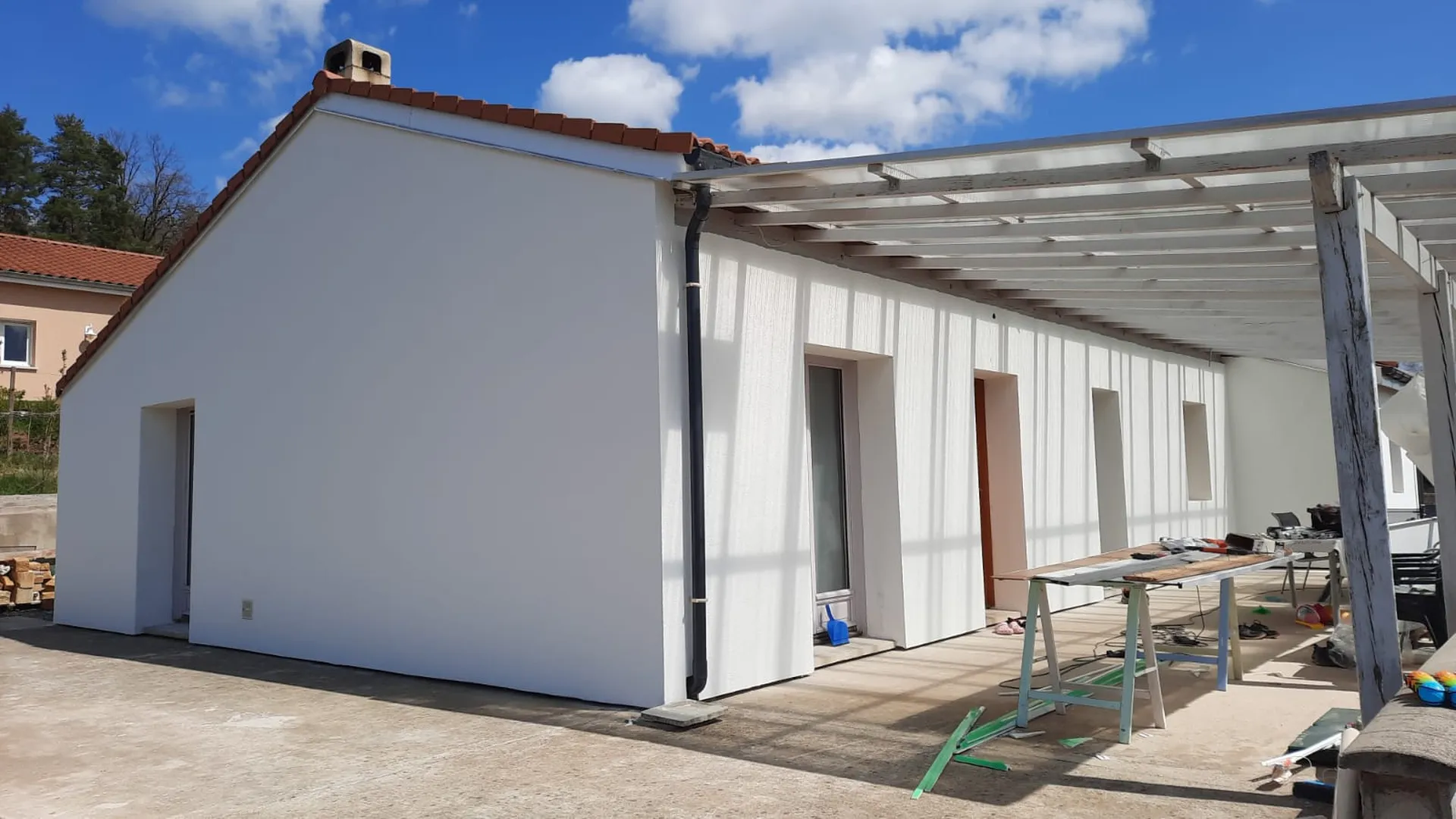 ALPAC ISO réalise votre projet d'isolation thermique par l'extérieur pour maison passive à Cergy avec des panneaux fibres de bois IPFB PARNATUR de 200 mm offrant une excellente résistance thermique R = 5,10 m².K/W (λ = 0,039 W/m.K). Cet isolant biosourcé certifié KEYMARK apporte une forte inertie thermique (densité élevée) essentielle pour le confort d'été, un excellent déphasage thermique (jusqu'à 12 heures) et une capacité hygrométrique régulant naturellement l'humidité intérieure. Nous appliquons le système PARISO FB-M avec pose calée-chevillée garantissant la suppression totale des ponts thermiques, sous-enduit hydraulique MAITÉ armé avec traitement soigné de tous les points singuliers (jonctions menuiseries, angles) et finition enduit organique REVLANE SILOXANÉ TG 1.6 grain moyen aspect contemporain. Notre équipe spécialisée en construction passive coordonne les travaux avec les bureaux d'études thermiques pour garantir l'atteinte des performances visées (test d'étanchéité à l'air).